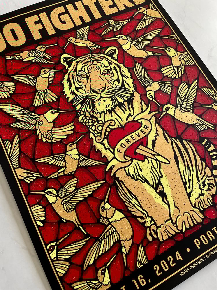 This poster is for the Foo Fighters and their show in Portland, OR on August 16, 2024 at the Providence Park.